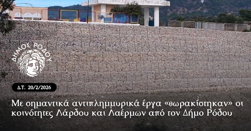 Ο Δήμος Ρόδου, μέσω της Διεύθυνσης Τεχνικών Έργων και Υποδομών, ολοκλήρωσε την κατασκευή αντιπλημμυρικών έργων σε περιοχές της Δημοτικής Ενότητας Λινδίων που επλήγησαν από τις πυρκαγιές του Ιουλίου 2023. Η παρέμβαση, συνολικού προϋπολογισμού 268.261,84 ευρώ (με ΦΠΑ), χρηματοδοτήθηκε από το Πρόγραμμα Δημοσίων Επενδύσεων και περιλάμβανε έργα σταθεροποίησης πρανών και διαπλάτυνσης οδών στις Τοπικές Κοινότητες Λάρδου και Λαέρμων.