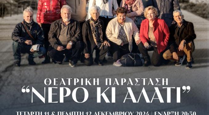 Η Θεατρική Ομάδα «ΠΗΓΑΣΣΟΣ» του 1ου ΚΑΠΗ Δήμου Ρόδου με τη σκηνοθετική καθοδήγηση της Σουσάνας Καρδούλια, σκηνοθέτιδας και του Κωνσταντίνου Μανή, εκπαιδευτικού, ανεβάζει το Θεατρικό έργο της Ζωής Κοντόγιαννου «Νερό κι Αλάτι» στο Δημοτικό Θέατρο Ρόδου την Τετάρτη 11 και Πέμπτη 12 Δεκεμβρίου στις 20:30.