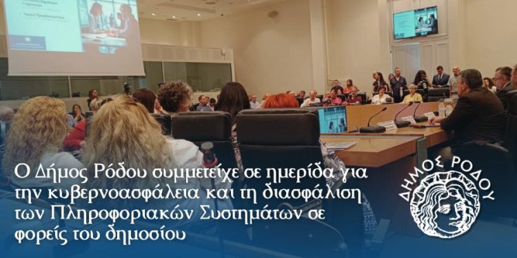 Ο αντιδήμαρχος Δ.Ε. Αρχαγγέλου και Ψηφιακής Μετάβασης Γιώργος Βαρέλης και ο πρόεδρος της ΔΕΥΑΡ Σωτήρης Βαγιανός εκπροσώπησαν το δήμο Ρόδου στην επιστημονική ημερίδα με τίτλο “Κυβερνοασφάλεια και διασφάλιση Πληροφοριακών Συστημάτων σε φορείς Δημοσίου και ΟΤΑ ” η οποία διεξήχθη στο Ζάππειο Μέγαρο στην Αθήνα με διοργανωτές τον Όμιλο εταιρειών Forum Consulting και META TEAM.