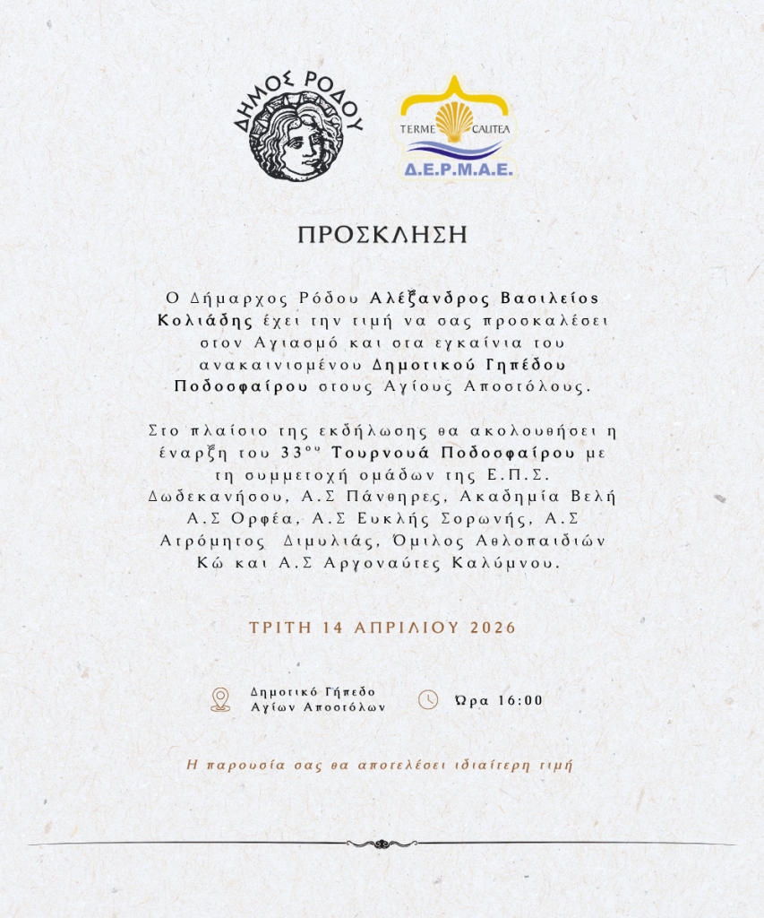 Πρόσκληση δημάρχου Ρόδου Αλέξανδρου Κολιάδη