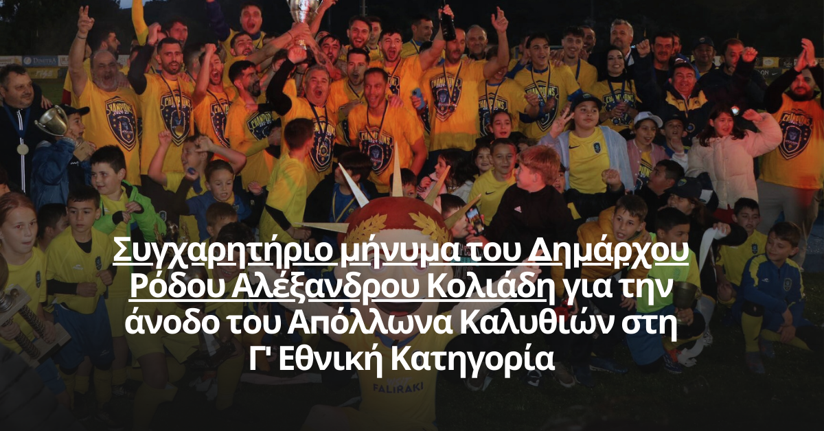 Συγχαρητήρια σε όλους όσοι συνέβαλαν στη μεγάλη επιτυχία του Απόλλωνα Καλυθιών!